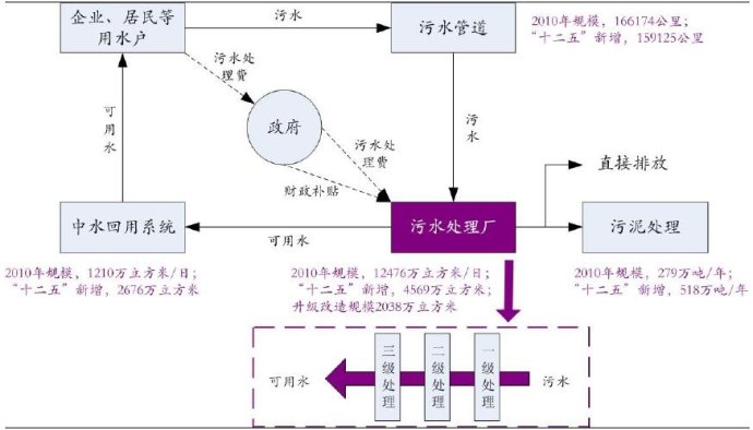 (2) 污水管道從2010年的16億公里上升到31億公里,污水供給量會相應(yīng)提高,小城鎮(zhèn)污水處理市場抬頭。